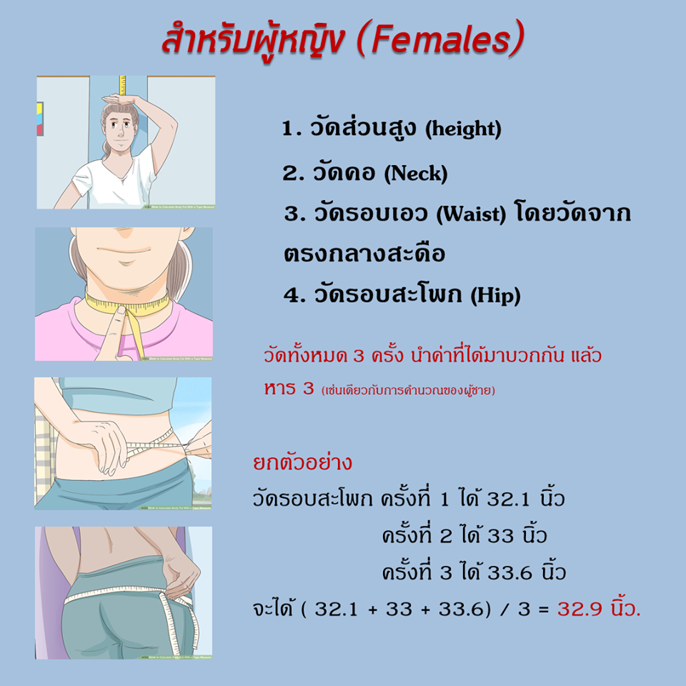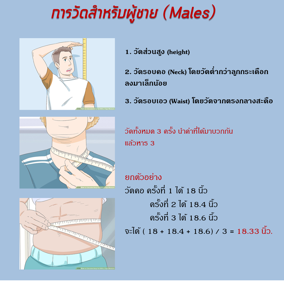 สามารถอ่านเพิ่มเติมได้ที่ https://www.wikihow.com/Calculate-Body-Fat-With-a-Tape-Meas…