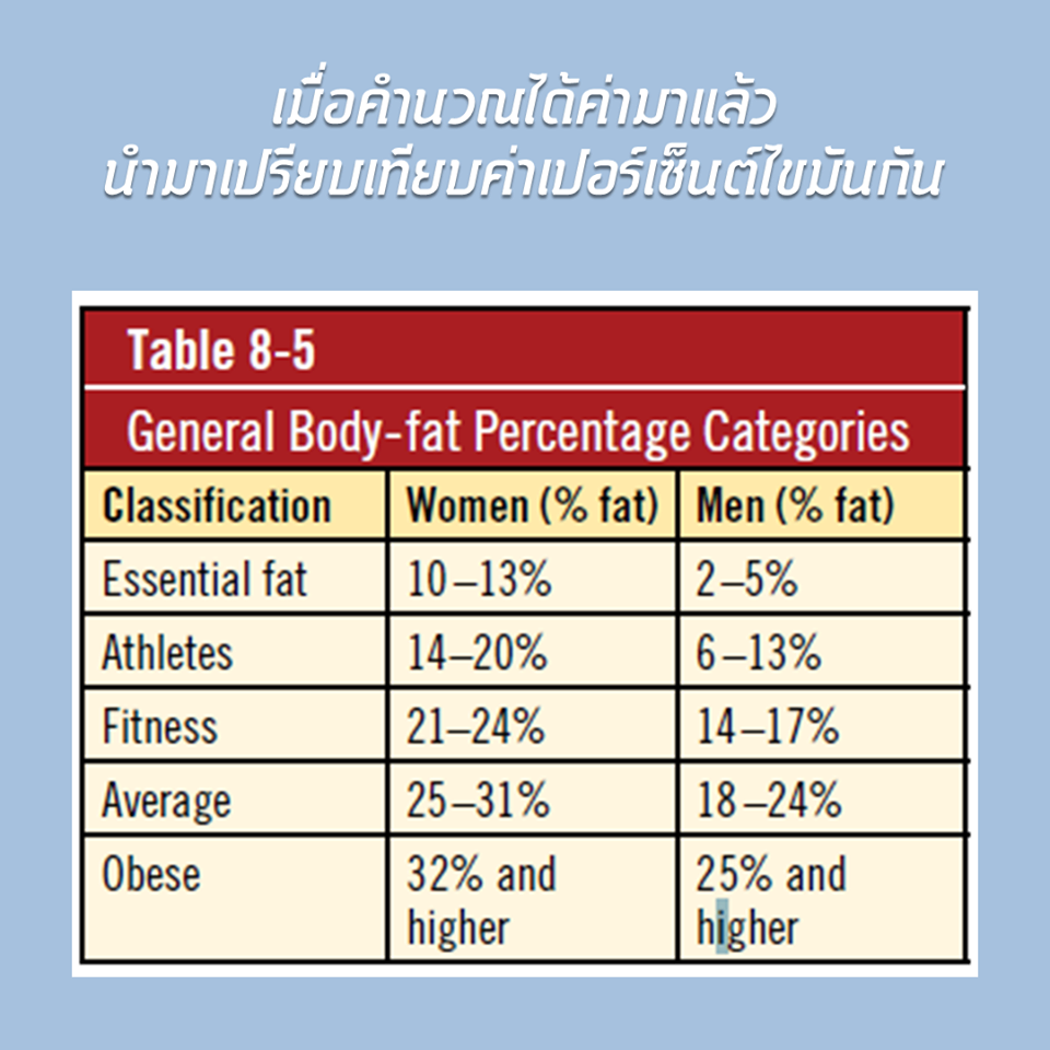 ไขมันในร่างกาย (Body fat) เป็นตัวแปรที่สำคัญที่จะบ่งบอกถึงการมีสุขภาพ รูปร่างที่ดี